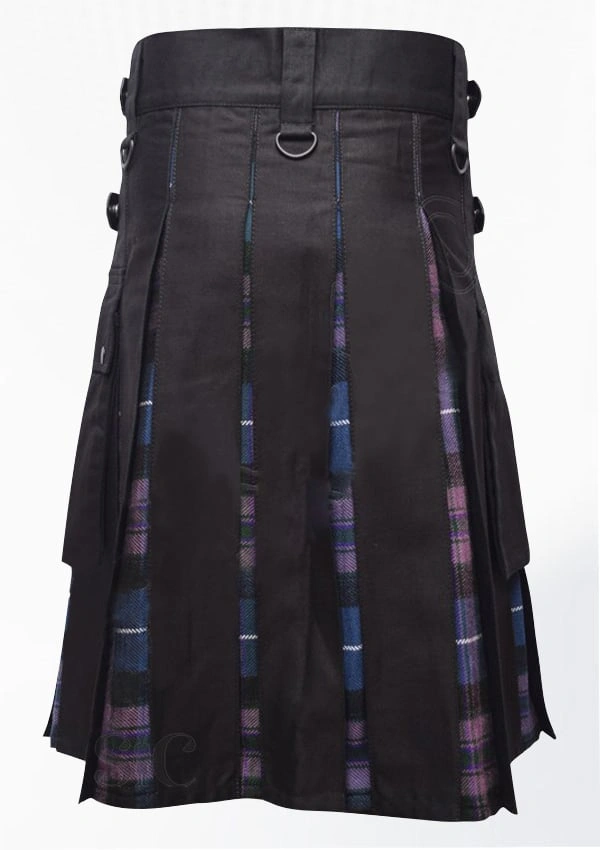 Premium Quality Traditional Scottish Black Cotton & Pride of Scotland Tartan Hybrid Kilt Design 55